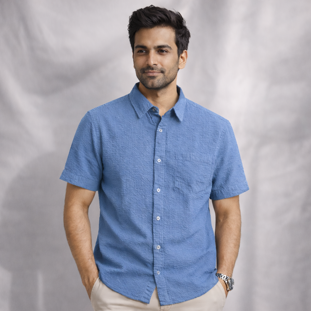 Experience effortless comfort with this original C&A short-sleeve textured shirt. Designed with a premium 55% cotton and 45% polyester blend, it delivers softness, breathability, and long-lasting durability. Lightweight and wrinkle-resistant, it’s perfect for everyday wear or smart-casual styling.