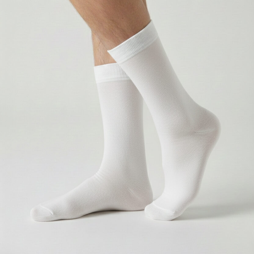 Long Cotton Crew Socks for Men – Pure White