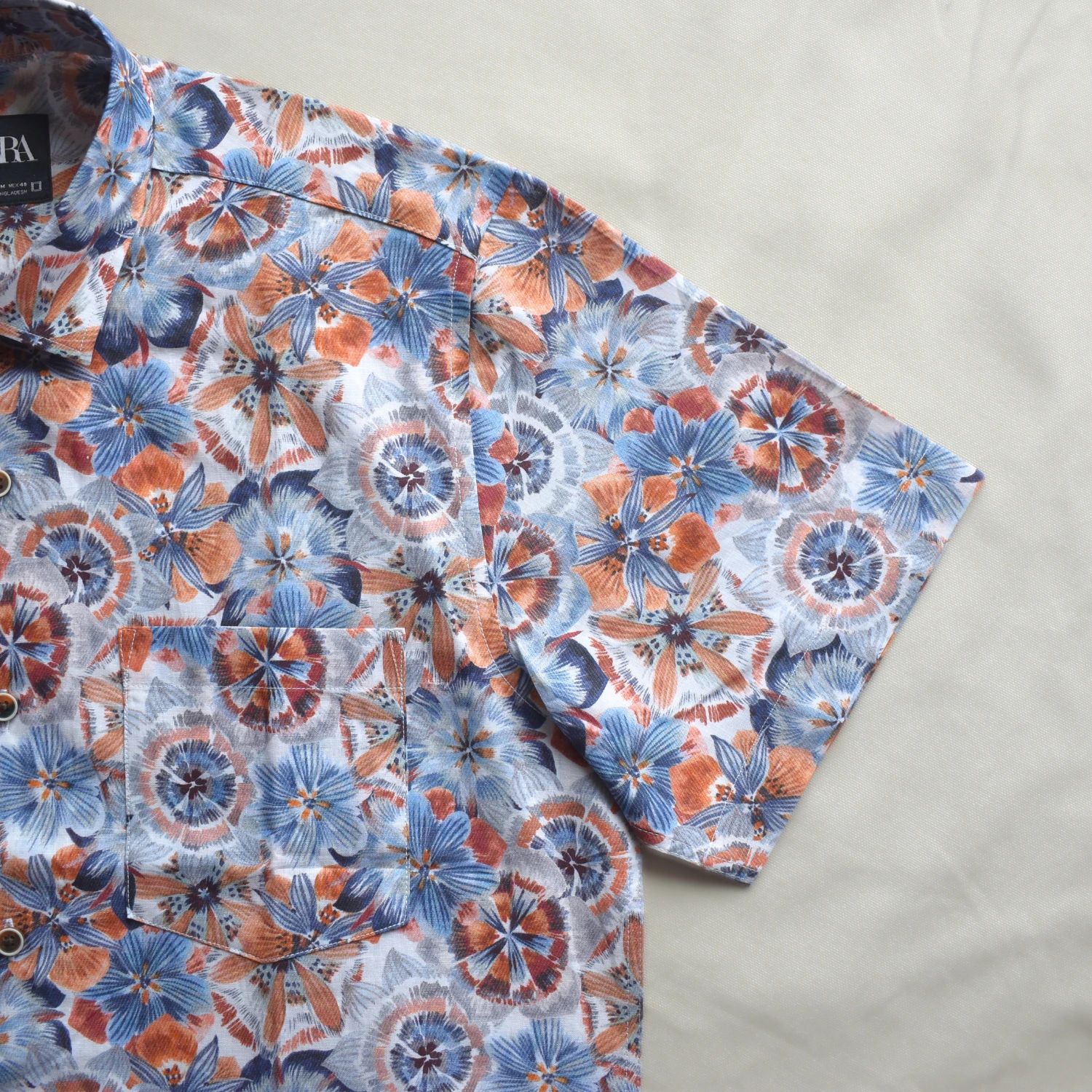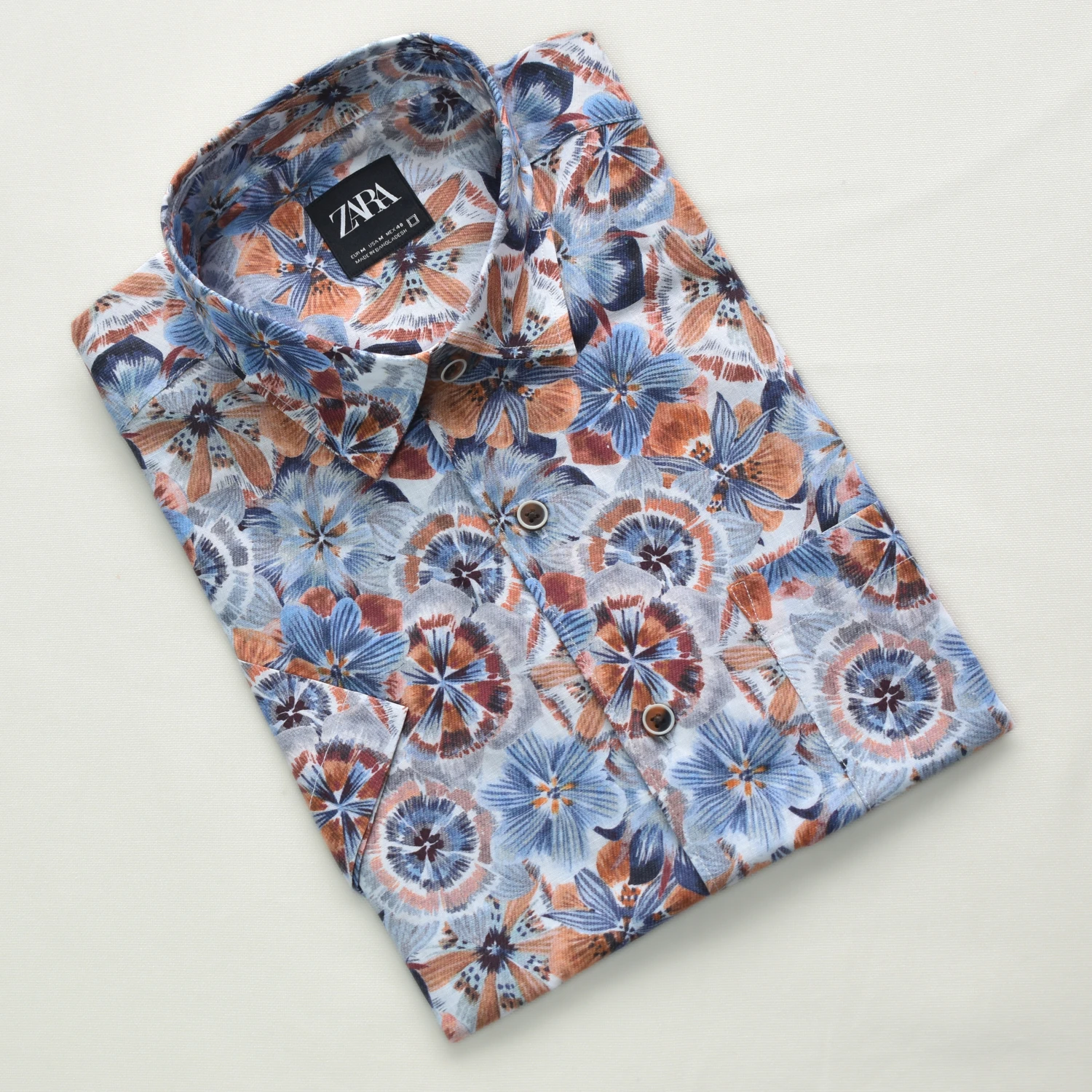 MARVELO Half Sleeve AirLite Floral Cotton Poplin Shirt