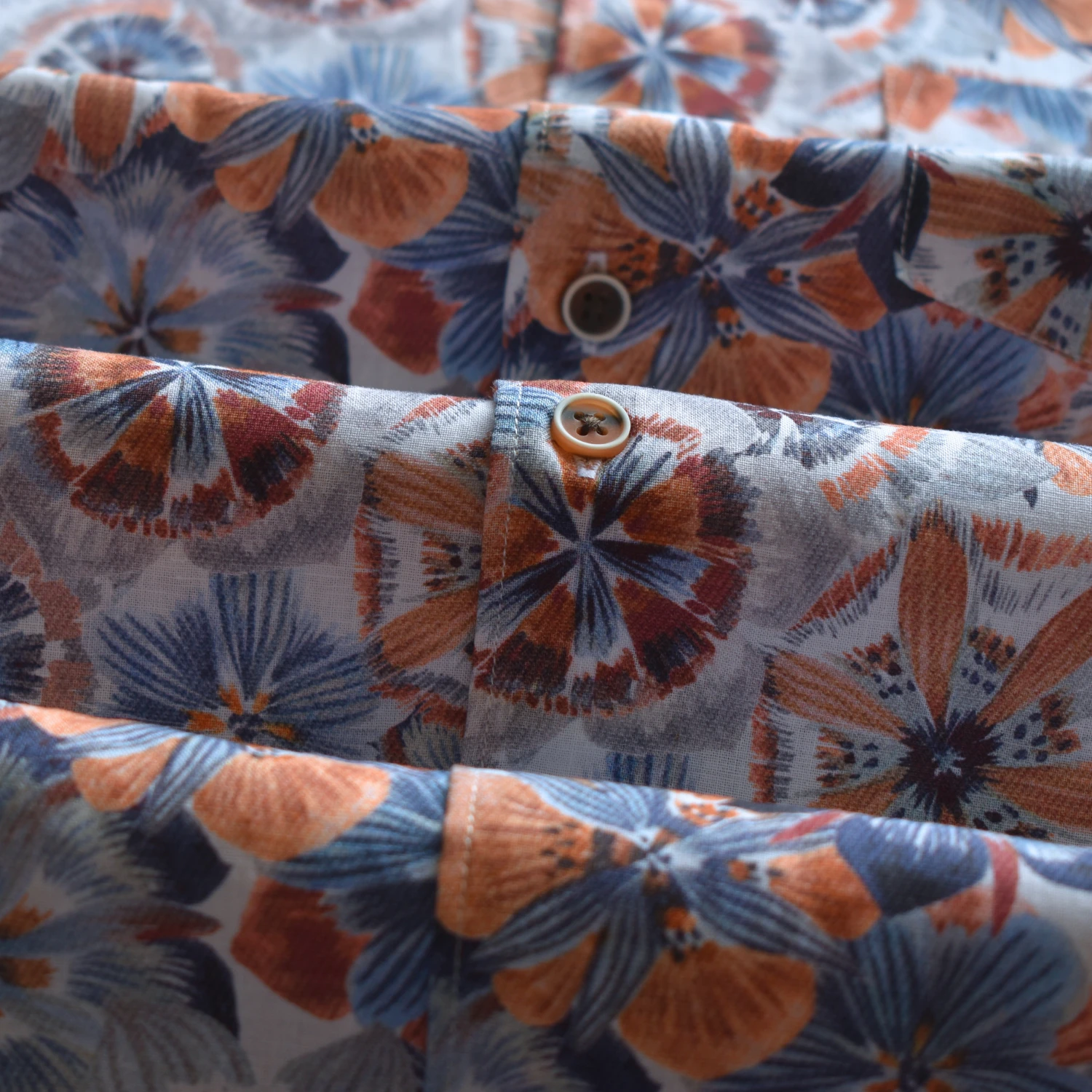 The shirt features a vibrant floral print, a practical chest pocket, and a contemporary round hem cut that allows you to wear it tucked or untucked with ease. Whether you’re heading out for a casual day or a relaxed evening, this shirt delivers both comfort and effortless style.