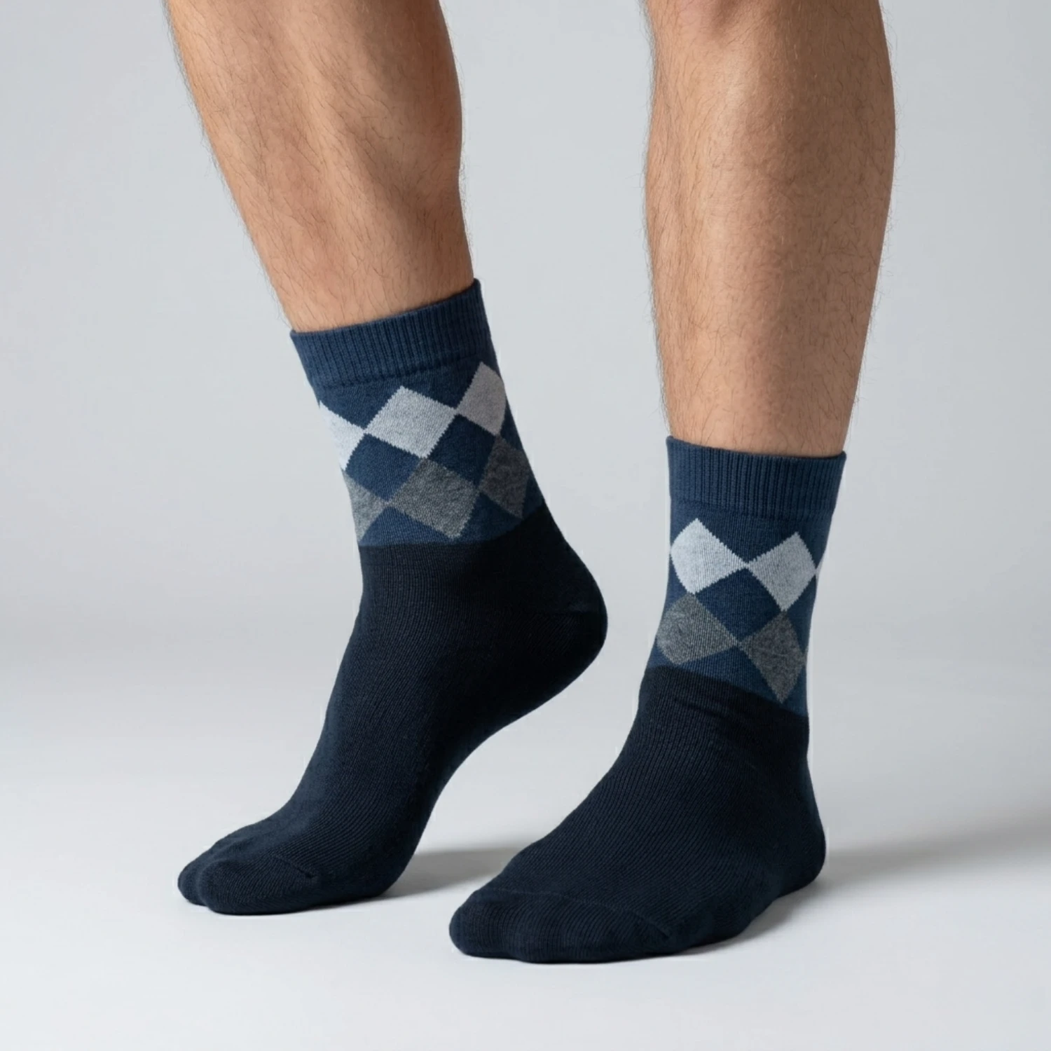 Marvelo Navy Slate Ice Argyle Ankle Socks