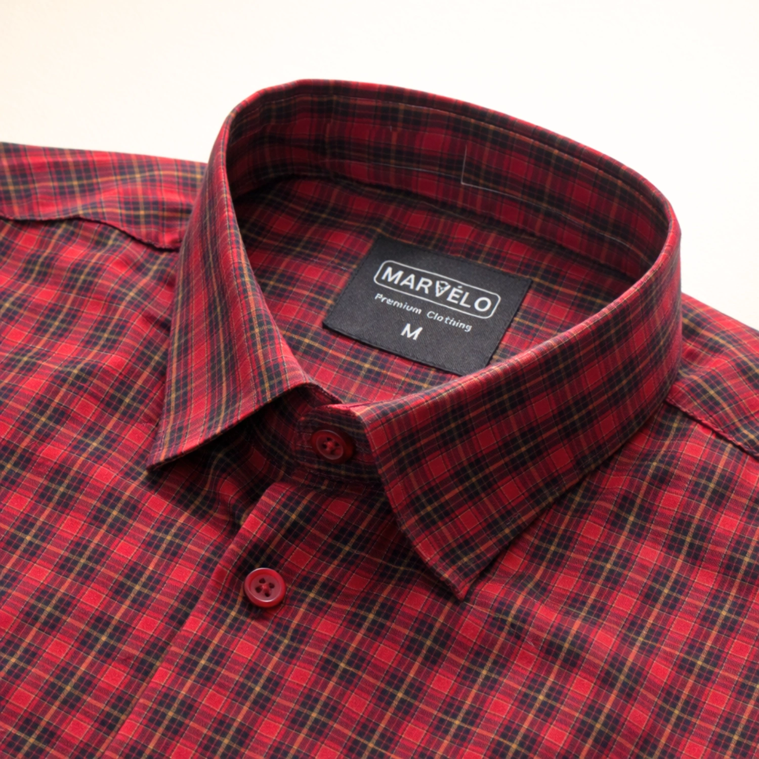 MARVELO Premium Maroon Check Formal Shirt – Regular Fit Men’s Clothing